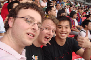 I've found a team with which to play soccer, near my place at Chaoyang Park. I met the dudes when buying tickets to go watch Barcelona play against a Beijing team. It was a really cool experience to see Thierry Henry, Samuel Eto'o and Ronaldinho all play and I got some footage of Ronaldinho scoring a goal =) The parl that we play on here is outdoor, but with fields the size of indoor and the turf is like a fake grassy thing. It's interesting as becuase it's just soooooooooo humid, playing tow 15 minute halves seems like you're playing an hour each. It' really nice to be doing something active again as I've lost my fitness that I had when I was playing outdoor soccer at home =/ I need to harden the eff up again and lose some of my jelly. LOL, even though I'm a little fatter than I was at home now, I'm about 10kgs lighter due to muscle loss!